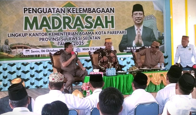 Kegiatan ditutup dengan agenda penguatan kelembagaan madrasah di MAN 2 Parepare, dihadiri ratusan guru madrasah. Dalam arahannya, Dirjen Pendis mengingatkan pentingnya pendidikan berbasis nilai dan kecintaan terhadap profesi.